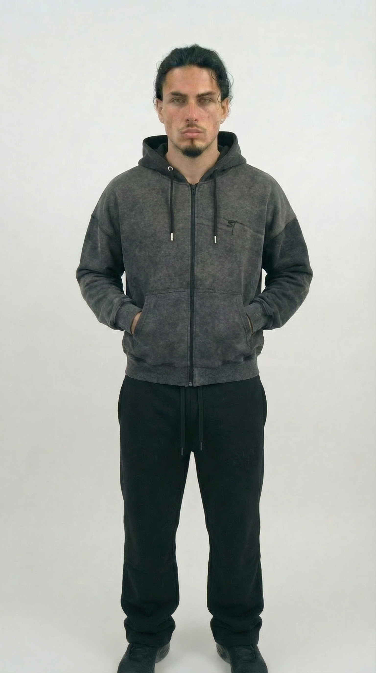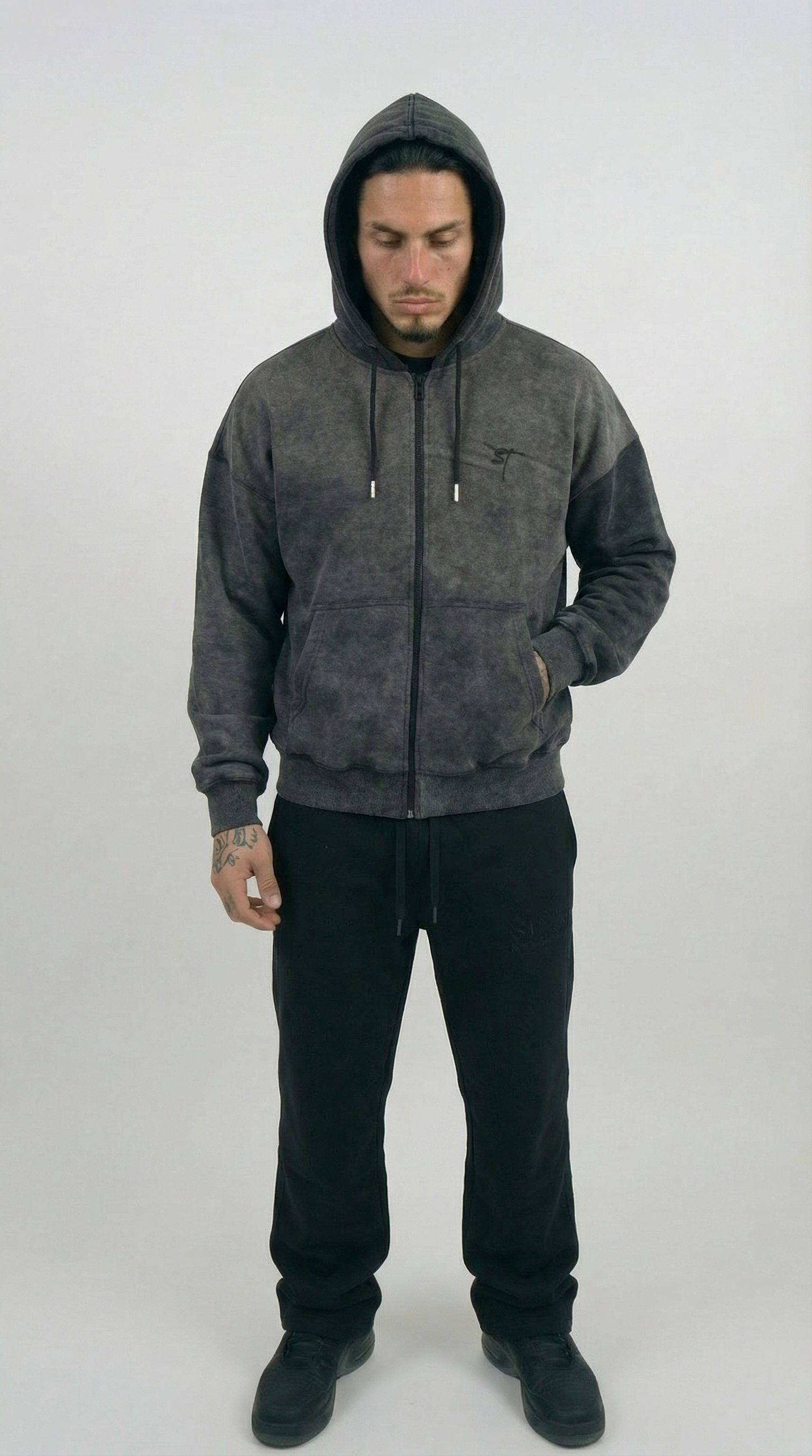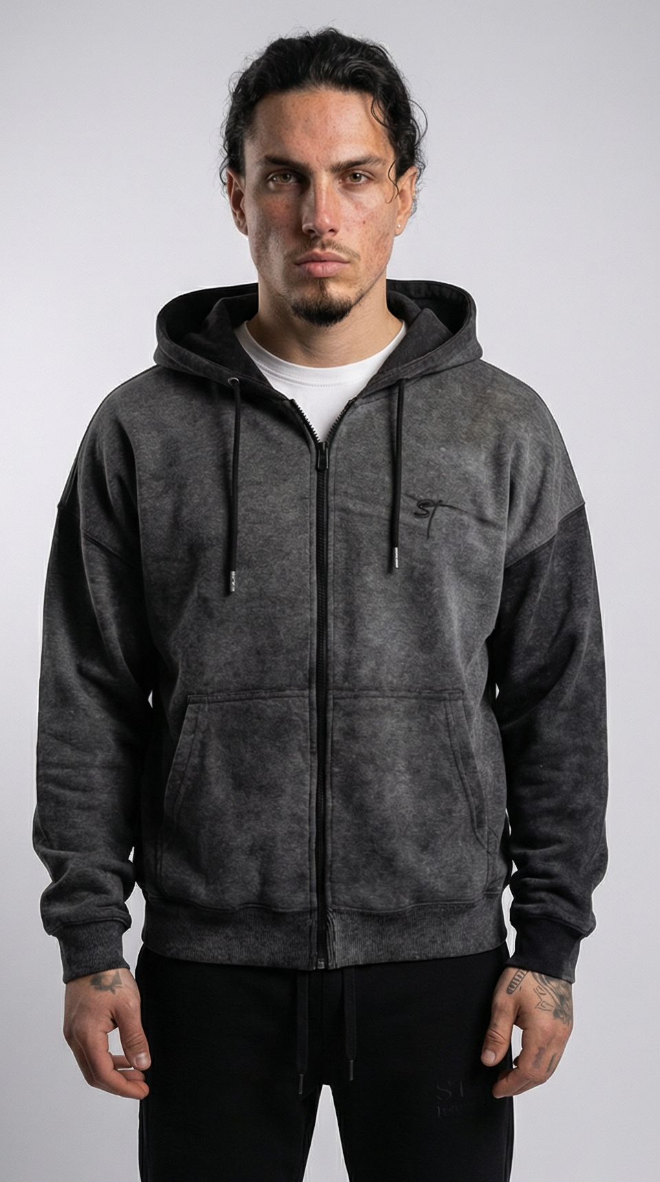 STSL® Zip Hoodie – Washed Black