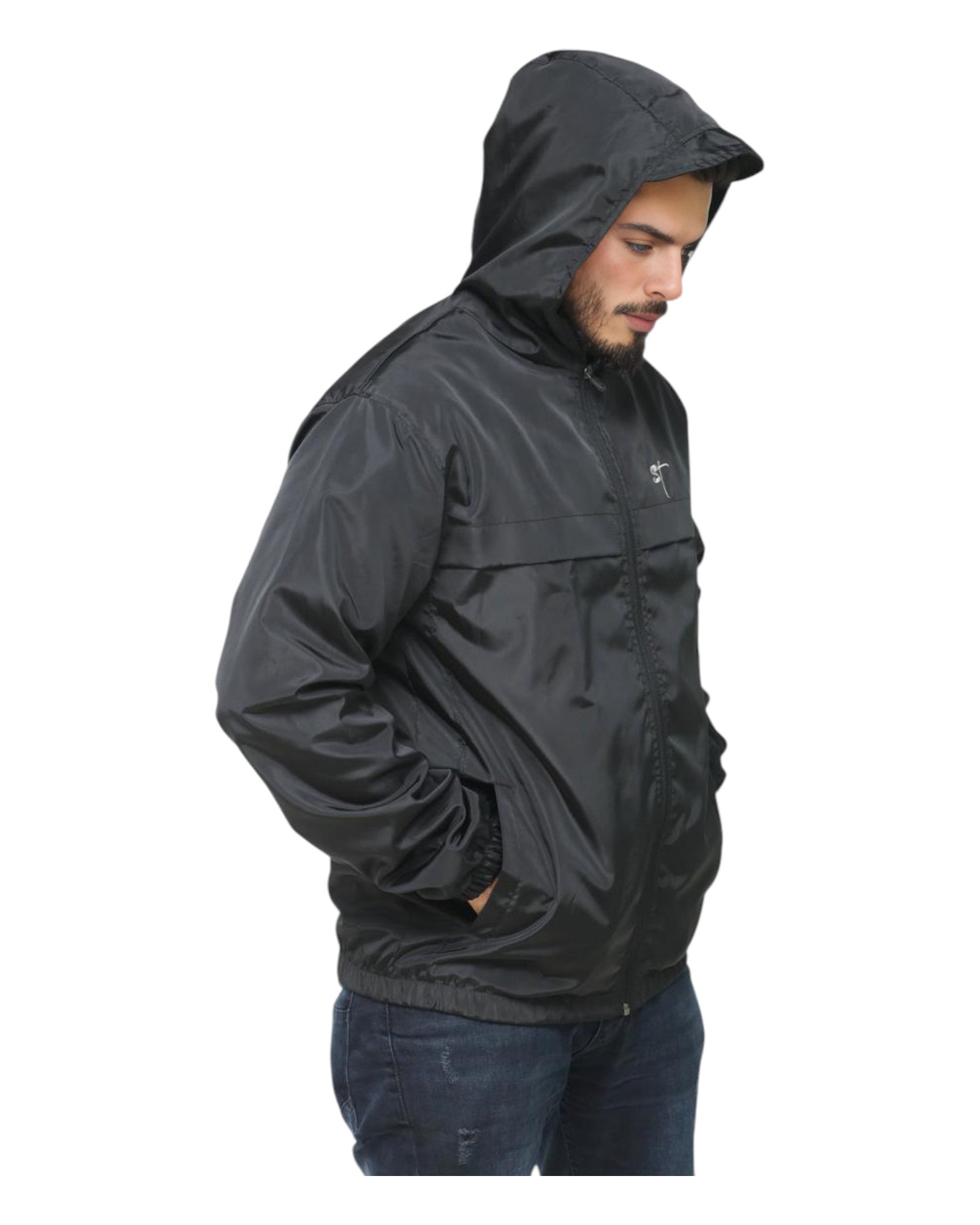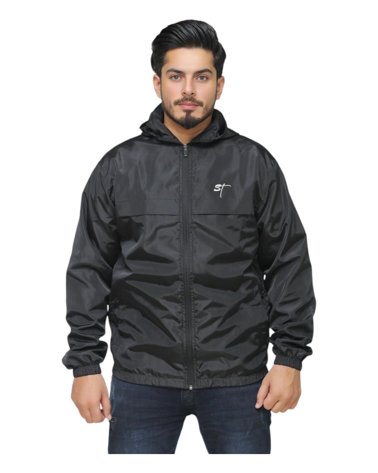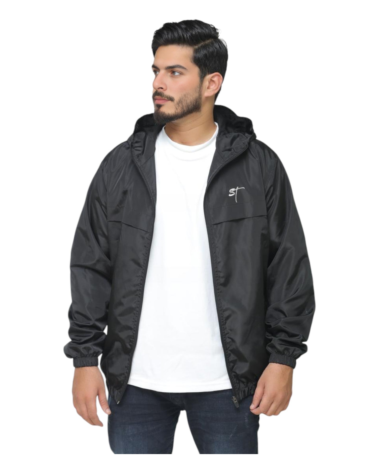 Der STSL® Windbreaker in cleanem Schwarz kombiniert minimalistischen Streetstyle mit funktionalem Design. Das leichte Polyester-Material mit atmungsaktivem Mesh-Innenfutter sorgt für Tragekomfort, während die Kapuze und elastischen Bündchen dich zuverlässig vor Wind schützen.